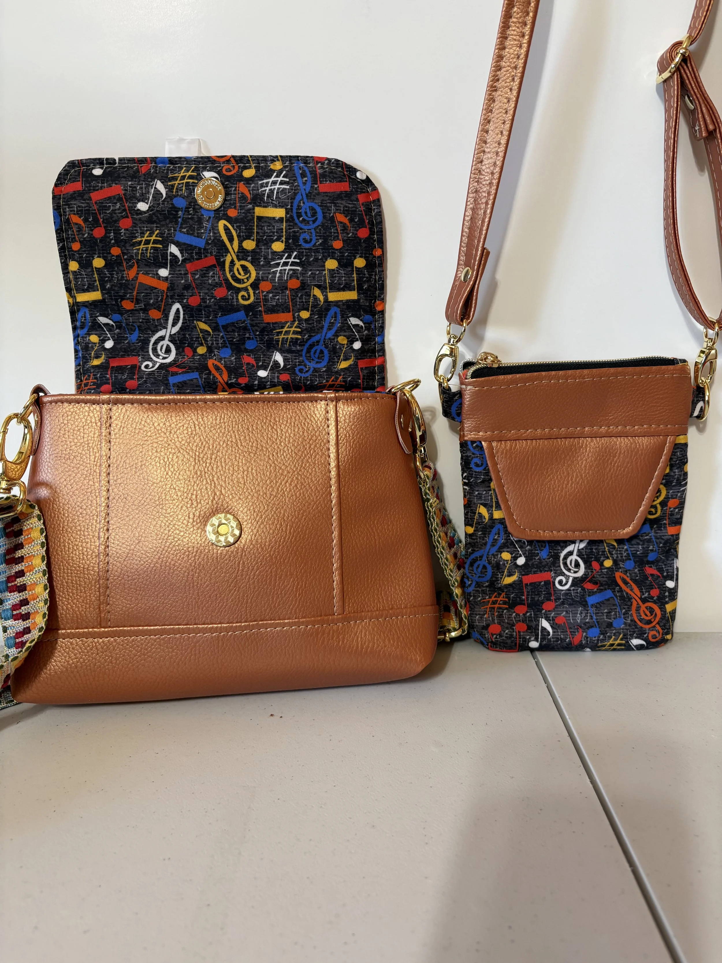 Musical Notes! Matching crossbody bag and cell phone bag.